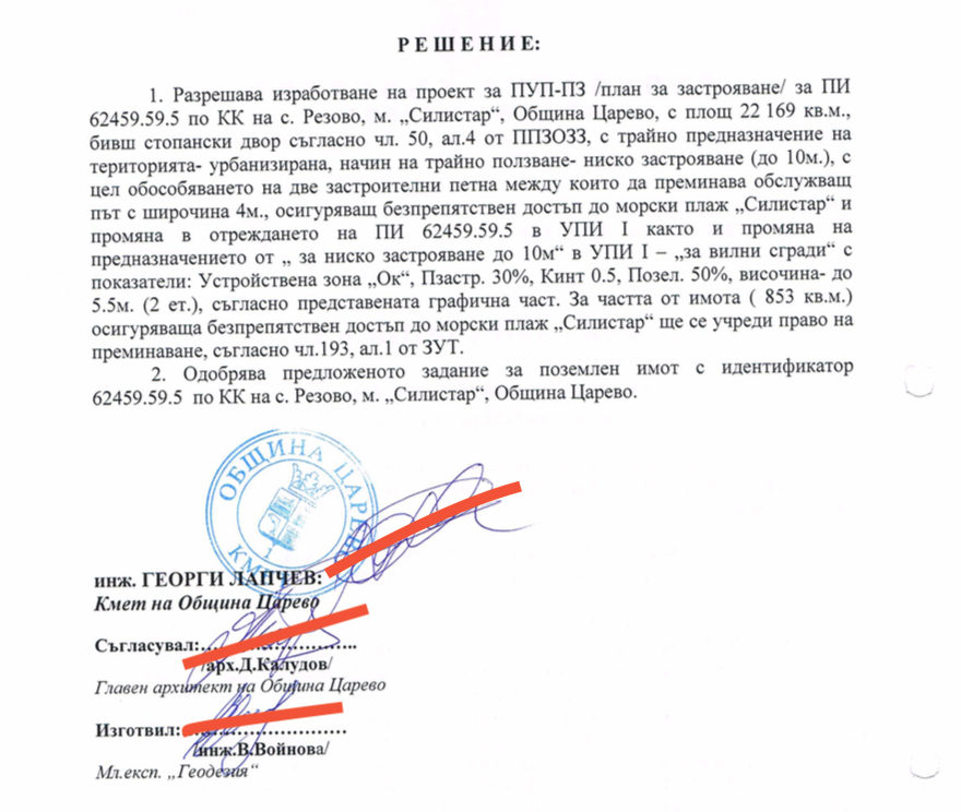 Очевидно инвеститорският натиск е голям, защото Лапчев не се съобрази и с партийното мъмрене от Бойко Борисов и излъга пред цяла България, че не бил подписвал план за застрояване и нямало дори инвестиционно намерение. Такива документи обаче черно на бяло са внесени в докладна от самия него и гласувани от общинските съветници.