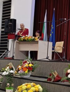 Участие в тържественото събрание-концерт взе проф. Емануел Мутафов, зам.-председател на БАН. Той връчи на ректора на Университета доц. Десислава Атанасова поздравителен адрес от името на чл.-кор. Евелина Славчева, председател на БАН. В него се казва: „Русенският университет е пример за академична изява, иновативност и ангажираност към развитието на регионалната икономика, науката и обществото. Вие сте създали мощна образователна общност, която обединява талантливи студенти, изследователи и преподаватели, споделящи стремежа към знание и прогрес. Вашият принос към научните изследвания, трансфера на технологии и международното сътрудничество е безценен и заслужава най-високи оценки“.