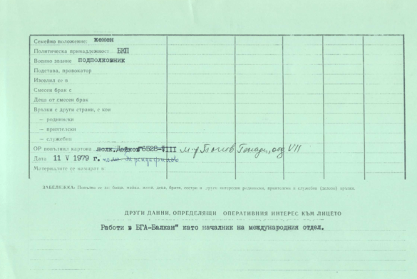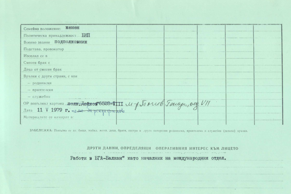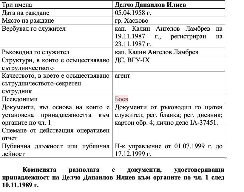 Видимите препратки към базата данни сочат, че той не само е бил агент, но е останал в службите и след края на режима, като следата му минава през НСС, а в по-късно и през наследилата я ДАНС. Това означава, че агентите Боев и Живко са били колеги и след 1989 г. в службите за сигурност, т.е. те са се познавали много добре и вероятно често са комуникирали като колеги.