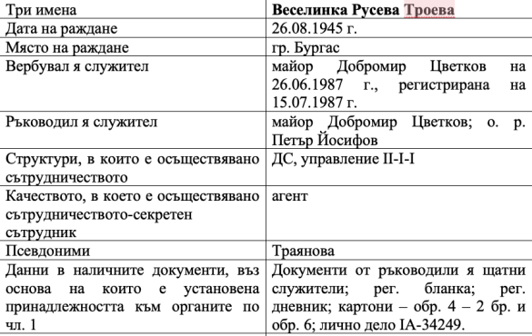 Тук трябва да се добави и още една разкриваща връзка, за която има конкретни факти. Георги Калушев, агент „Живко“, е свързан и с вече закритата фирма „Троева Консулт“, собственост на агент „Траянова“. Тя е вербувана през 1987 г. към Второ Главно Управление на ДС, Това е проф. д-р арх. Веселинка Троева, посочвана като заместник-ректор на УАСГ и бивш Изпълнителен директор на “Националния център за териториално развитие”. След развода си с майката на Ивайло Георги заживява с Веселинка, тъй като и двамата са регистрирани на един и същ общ домашен адрес, освен, че имат и съвместен бизнес. Естествено е събирането на двама агенти на ДС под общ покрив, с общи спомени, интереси и среда. Така че може да се каже, че Ивайло Калушев от ранна възраст е имал плътно обкръжение, тъй като и мащехата му е била агент – колега на бащата. Това разширява картата още веднъж около бащата на Калушев. Той е обвързан не само с агентурното си минало и служебна принадлежност към ДС, а и регистрира допълнителен фирмен, семеен и професионален кръг от лица с принадлежност към ДС. Така моделът започва да изглежда все по-малко като поредица от биографични инциденти и все повече като социална тъкан, в която тези хора не просто са съществували паралелно, а са си сътрудничели и комуникирали през институции, фирми, семейна среда, академични позиции и сдружения.